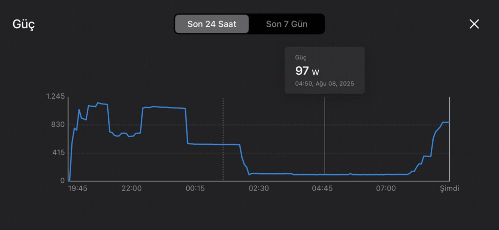 26c Uyku Modu (Sessiz Fana Geçiyor) ~ 500 – 100 Watt arası geziniyor..